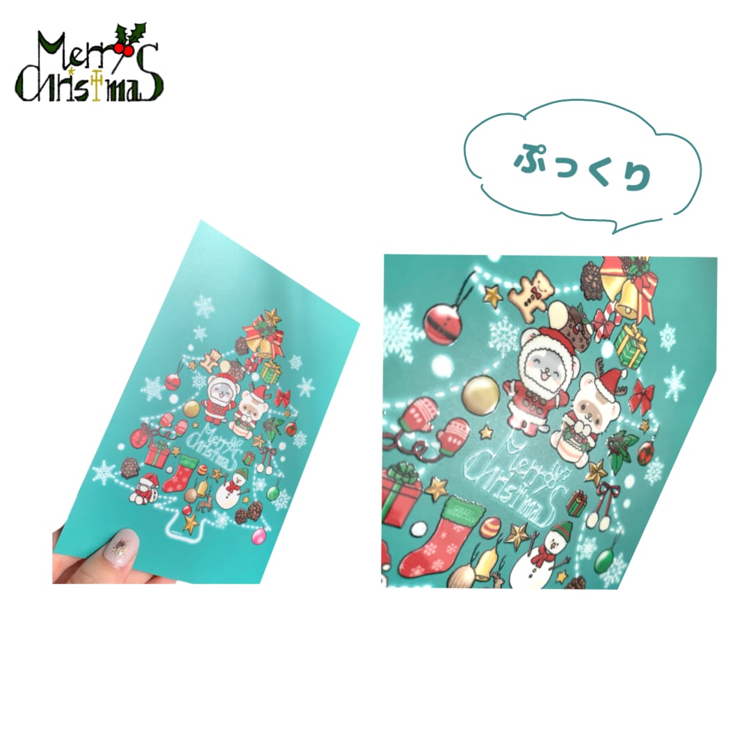 かわいいフェレットとクリスマスツリーのポストカードです!